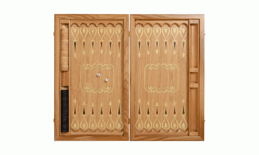 Резные нарды отечественного производства, компании-производителя РФН. На доске вырезан традиционный русский орнамент, отражающий быт людей в старину, а конкретно охоту на лиса с использованием прирученного сокола. Основной материал изделия - дуб. В наборе количество фишек стандартное: 15 светлых и 15 темных.