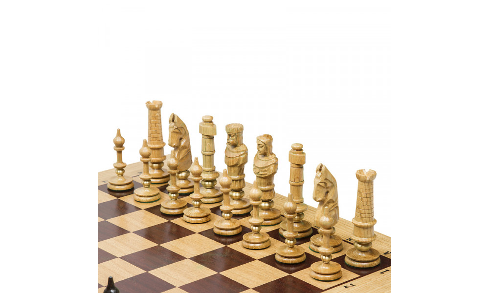 Изысканные и невероятно эстетически привлекательные шахматы "Роял" (маркетри) – выбор ценителей и коллекционеров по-настоящему качественных настольных игр. Выполненные из качественной древесины, эти шахматы впечатляют королевским размахом оформления. На каждой фигурке можно заметить элемент, покрытый позолоченной краской, а доска выполнена в технике маркетри. Также нельзя не отметить наличие лотка с ячейками для комфортного и безопасного хранения фигур.